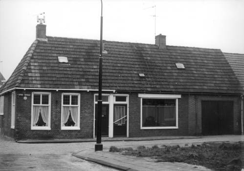 Slotmakersstraat 42 -40. In de rechterhelft van de dubbele woning dreef wed. Sjoukje Broersma haar winkeltje. In het najaar van 1961 werd de houten schuur gesloopt en bij de woning getrokken om meer woonruimte te creëren. Het resultaat is te zien op de inzet uit 1974. De andere helft werd bewoond door visserman Pieter Wouda van de WON 21.